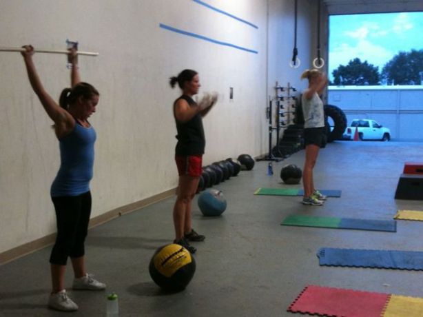 Whenever you finish your reps that round, the remaining time in the 2:30 is your rest. The faster you work, the more you rest…. But the more tired you are. I love workouts like that! After the team went through that once, they did it all again!