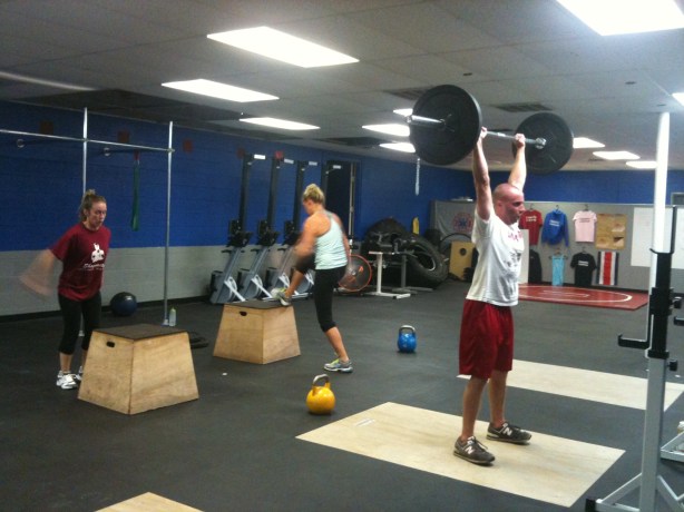 Any time you’re doing a 20-minute workout, as hard as you can, it’s going to be a challenge, but the group tonight did an awesome job of maintaining proper form through fatigue! In the picture above you can see Ashley jumping up to the box. She actually decided mid-workout that she wanted to increase the height of where she was jumping. What a statement for her to make the workout even more difficult!