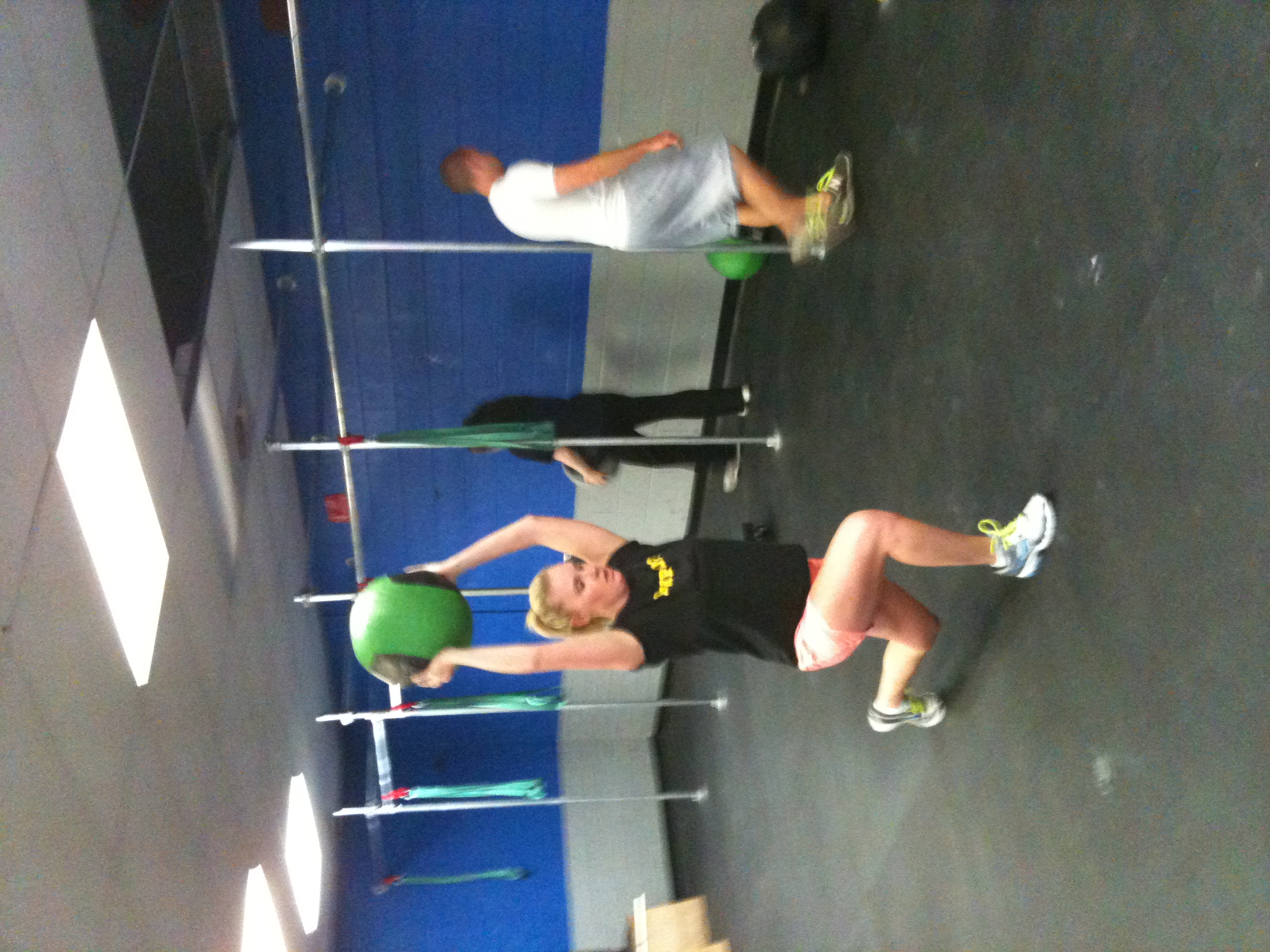 - The Walking Lunges had a medicine ball being held overhead.